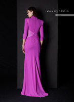 Impresionante vestido largo de fiesta, elaborado en mikado y tul bordado. Presenta un cuerpo de escote barco y una espalda abierta en forma de V. La cintura se ciñe con un fajín de lorzas asimétricas, dejando paso a una sorprendente falda de estilo princesa que completa este look tan original que será el centro de todas las miradas.