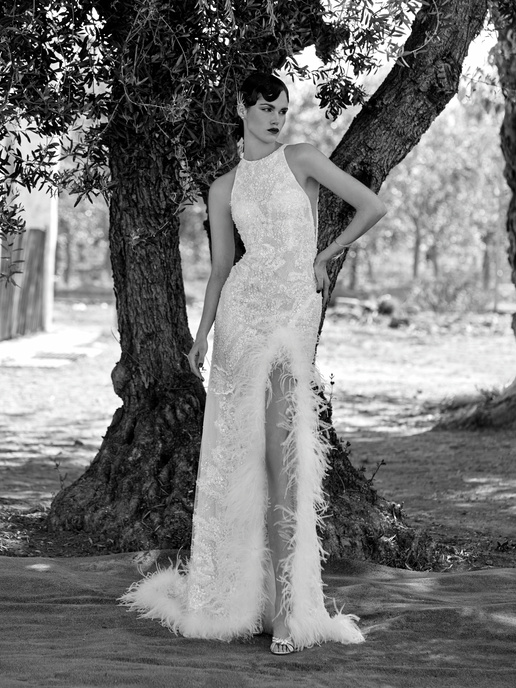 En esta colección tan estudiada podemos encontrar escotes halter, corazón o en V, así como faldas princesa o sirena, adornadas con plumas y flores en 3D, vestidos donde las espaldas siempre tienen un gran protagonismo con escotes de vértigo muy femeninos.